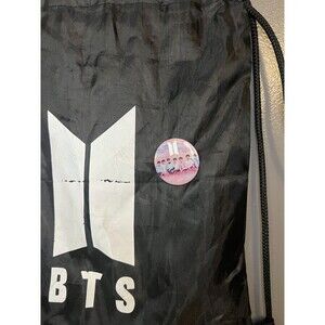 BTS Drawstring Backpack Bag Black K-Pop Logo with Love Yourself Button Pins Set