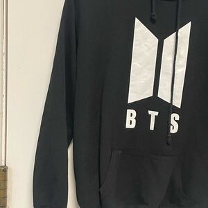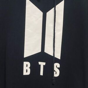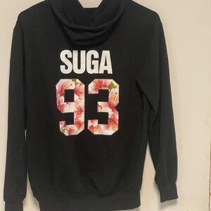 BTS SUGA 93 black sweater features a bold white logo on the front, offering a stylish and comfortable fit. The hood adds an extra layer of warmth, making it perfect for casual outings or fan gatherings.