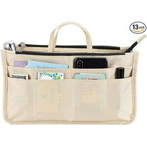 BTSKY Purse Organizer Insert Tote Bag High Capacity 13 Pocket Handbag Beige