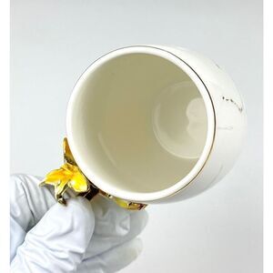 BTaT Brew To A Tea Fancy Ceramic Coffee Tea Mug w/ Spoon Floral White Yellow Gold
