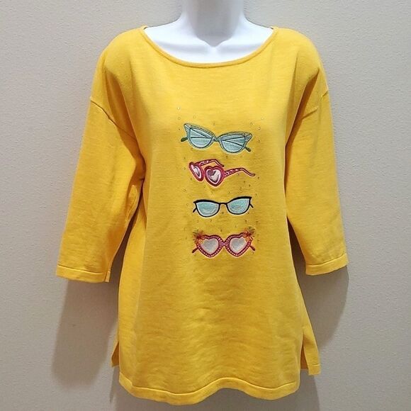 BUA/BUA RETRO SUNGLASSES SWEATER/TUNIC, Sz M, YELLOW, COTTON, NWOT