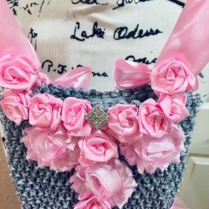 Nothing could be more sophisticated, elegant, and charming than Our "BUBBLE GUM BEAUTY" petal pink and grey couture flower girl tutu dress. This gorgeous dress is full and elegant and comes with rhinestone embellished waistband. Features: Pink double satin ribbon straps with long draping large satin bow in back and double satin ribbon roses at each shoulder. *Additional sizes available at www.adinaballerina.com