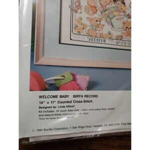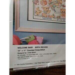BUCILLA Counted Cross Stitch Kit WELCOME BABY BIRTH RECORD #40781 14" x 11" NOS