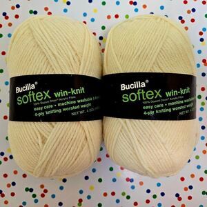 2 VINTAGE SKEINS OF HIGH-QUALITY BUCILLA SOFTEX WIN-KNIT YARN CREAM/ OFF WHITE 4 PLY WORSTED KNITTING YARN, ANTI PILLING 4 OUNCES PER SKEIN