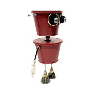Most of my found object robot parts are found in flea markets, thrift stores, and auctions.