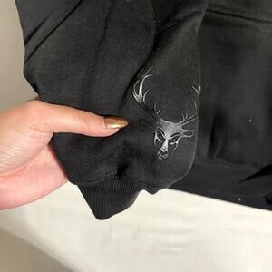 This is a black pullover hoodie from the brand BUCKED UP. It features the "BUCKEDUP.COM" logo in a raised, 3D style on the chest and a small buck logo on the left wrist. The hoodie has a front kangaroo pocket and is made of a soft fleece-like material. It is a size XXL. The hoodie appears to be a unisex or men's style, given the brand's association with fitness and hunting apparel. The original tags are still attached.