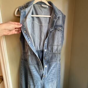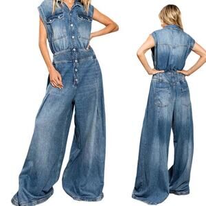 BUCKETLIST Denim Jumpsuit Super Wide Leg Sleeveless Flight Suit Button Snap M