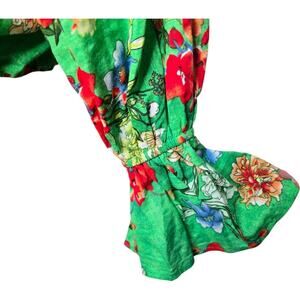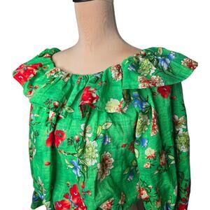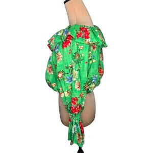 Vibrant green crop top with colorful Hawaiian floral print.