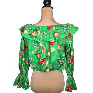 BUCKETLIST Hawaiian Floral Ruffle Long Sleeve Crop Top