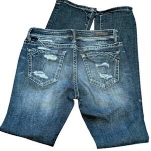 BUCKLE BLACK Dark Wash Modena Boot Cut Denim Blue Jeans Women's 25/32 Distressed