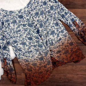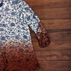 Buckle / Gimmicks by BKE floral ombre white, brown & blue 3/4 tab sleeve cutout button down top.