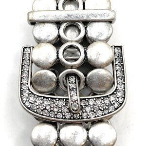 Antiqued matte silver plated bracelet with cubic zirconia accents. It is 6.5 to 7 3/4 inches long, features a buckle closure. Last in the 2012 catalog page 61. In good used condition.