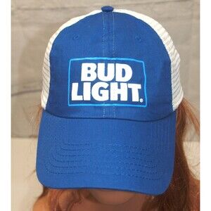 Officially licensed Bud Light trucker hat with breathable mesh and adjustable strap backperfect for backyard BBQs, tailgate spells, or moonlit beer runs. Modeled by Denise, who confirms it pairs well with wings and wings (buffalo or fairy). Like-new condition, inspected by our two-winged quality control team and ready to ship in protective packaging. One size fits most. Cotton/Polyester.
