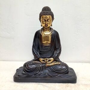 BUDDHA SCULPTURE GOLD LEAF ACCENT BEAUTIFUL SERENE FACE
