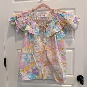 BUDDY LOVE Pastel Tie-Dye Ruffle Sleeve Blouse Top