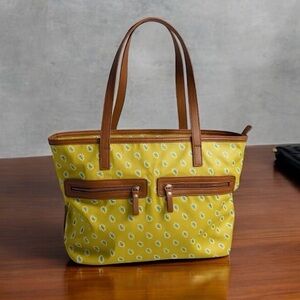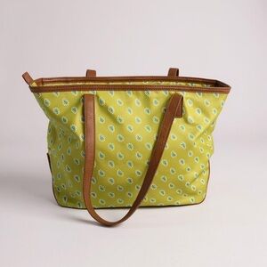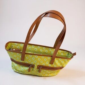 BUENO TOTE PURSE - Light Yellow Green with Blue/White Droplets
