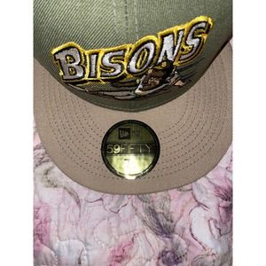 BUFALLO BISONS INTERNATIONAL LEAGUE OLIVE CAMEL BRIM NEW ERA FITTED 7 5/8
