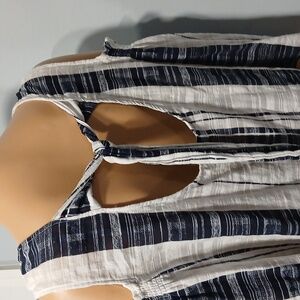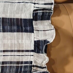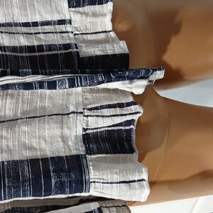Long-sleeved blouse in white and navy blue in an excellent size for regular use this summer