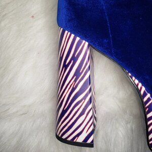 Get ready to turn heads at every Bills event with these stunning platform ankle boots, combining a soft blue velvet upper with a striking Zuba print sole. These statement boots bring the perfect blend of comfort and Bills pride, making you the standout fan at any tailgate or party.