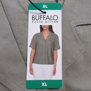 BUFFALO DAVID BITTON Linen Blend Button Front Shirt XL (16) Olive Green Top NWT