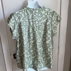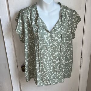 BUFFALO DAVID BITTON Mint Ditsy Floral Jaquan’s Flutter Sleeve Blouse-L NWT