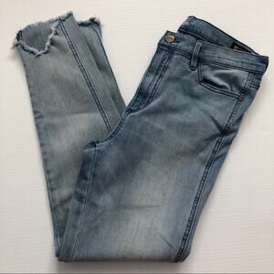 Buffalo brand ankle length jean with frayed ankle detail.