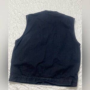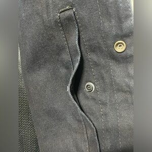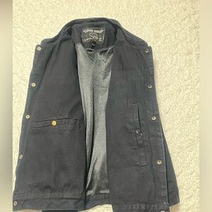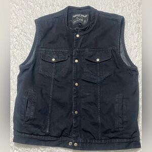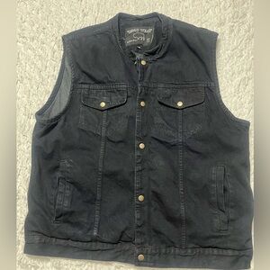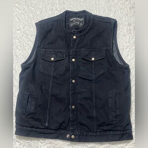 ROAD WEAR CONCEAL AND CARRY MOTO VEST, MESH LINED, BLACK DENIM, SNAP FRONT, CONCEALED POCKET SNAP IS BROKEN, SEE PHOTOS, CAN BE REPAIRED, PRE OWNED IN GREAT CONDITION, SIZE 2XL