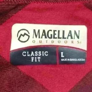 Classic buffalo plaid shirt. Button-up front. Chest pocket detail.