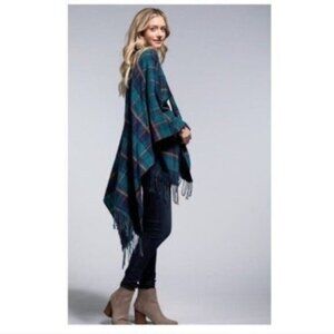BUFFALO PLAID TEAL RUANA PONCHO-NEW