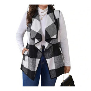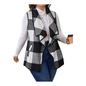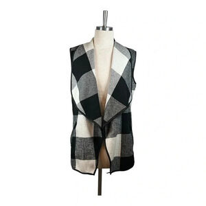 BUFFALO PLAID WATERFALL COLLAR VEST BLACK WHITE WOMEN SIZE SMALL