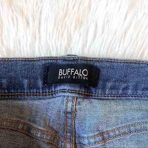 Women’s Buffalo by David Bitton Distressed Ivy High-Rise Raw Hem Crop Flare Jeans Size 30. Mock patch on knee and back left pocket. Mock Sewed up Hole on knee. These look great with boots! Smoke free home.