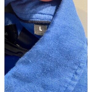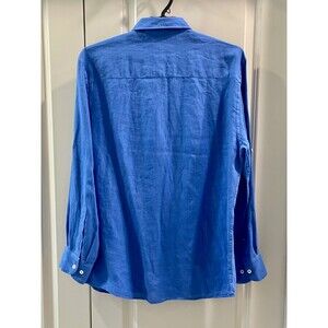 Excellent pre-owned condition. 100% fine linen with foldable, button up sleeves. Bright royal blue color. Sz L.