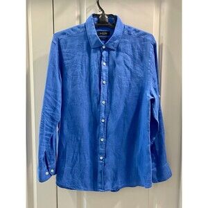BUGATCHI 100% Fine Linen Royal Blue Long Sleeve Button Down, Sz L