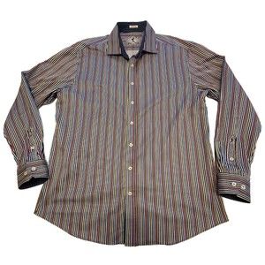 BUGATCHI MULTICOLORED STRIPED 100% COTTON SPORT SHIRT MINT COND. SZ XL