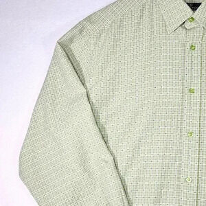 BUGATCHI Men's Dress Shirt XL Long Sleeve Woven Plaid Green