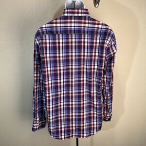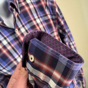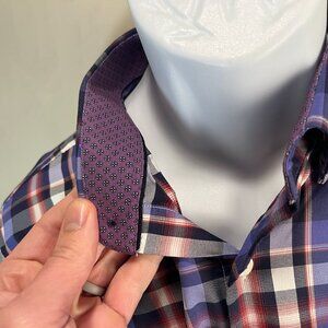 BUGATCHI Men's purple, black and white l/s Stretch performance shirt Large L
