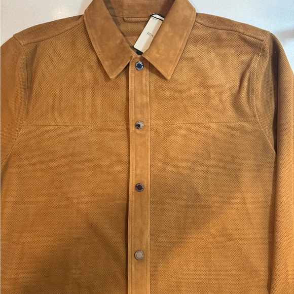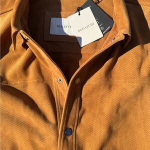 BUGATCHI SuaveLeather ButtonUp Shirt size L, Tan,100%Genuine, Italian-design,NWT