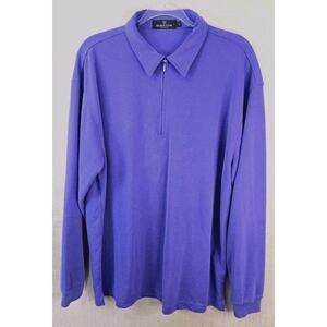 BUGATCHI UOMO 1/4 Zip Purple Long Sleeve Performance Pullover Men's Large Casual