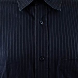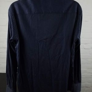 BUGATCHI UOMO Mens Long Sleeve Button Front Blue Striped Cotton Sz Medium