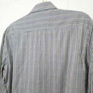 BUGATCHI UOMO Shirt Convertible Flip Cuff Men's Small Blue Check Long Sleeve