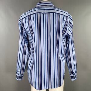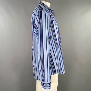 BUGATCHI UOMO Size XL Blue Navy Stripe Cotton Spread Collar Long Sleeve Shirt