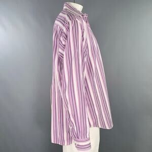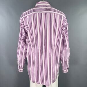 BUGATCHI UOMO Size XXL Purple White Stripe Cotton Long Sleeve Shirt