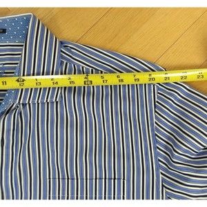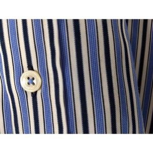 BUGATCHI UOMO Striped Button Down XXL Dress Shirt Flip Cuff Blue Long Sleeve