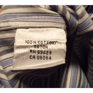 This Stylish Bugatchi Uomo Men's Dress Button Down Long Sleeve Striped Shirt in Light Blue, Navy & White is in excellent condition.
