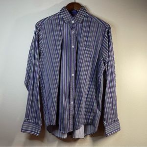 BUGATCHI UOMO CLASSIC FIT STRIPED BUTTON DOWN SHIRT Size Medium 100% Cotton