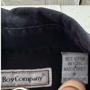 This vintage Bugle Boy button-up shirt is a must-have for any fashion-forward man. With a crested right breast and 16 candles, this shirt is perfect for any casual occasion. The black color and 80s theme add a touch of nostalgia to your wardrobe. Made with high-quality materials, this shirt is both comfortable and stylish. The short sleeves and regular size type make it a great choice for any man. Whether you're going for a laid-back look or dressing up for a night out, this Bugle Boy shirt is the perfect addition to your collection.....29"T x 23" W