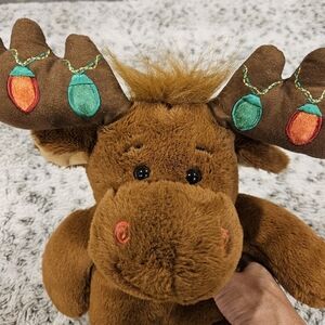 BUILD A BEAR Brown 18" Moose With Working Colorful Christmas Lights in Antlers