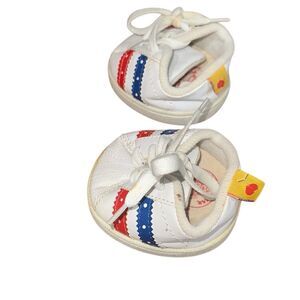 BUILD A BEAR SNEAKERS GOOD USED CONDITION SOME DISCOLORATION ALONG SIDES ON SHOES AS SHOWN IN PICS. I DID NOT TRY TO REMOVE OR COVER
