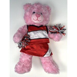 BUILD-A-BEAR WORKSHOP BABW 17" Pink Plush Stuffed Bear with Red Cheer Outfit EUC