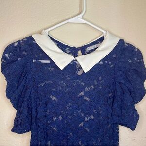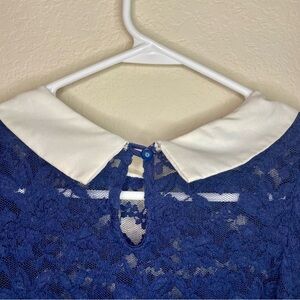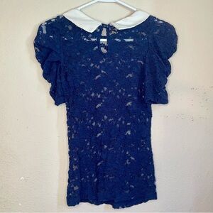 BUI-YAH-KAH Navy Lace Top with White Collar Women's (fits like XS/S)